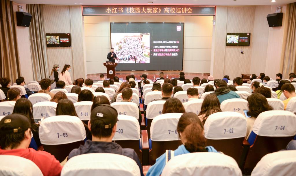 2020年11月3日下午,17吃瓜 “新春风”生涯工作坊在学校就创业中心的支持下组织学生参加了由小红书牵头,果酱传媒、易眼看荐组织的“校园大玩家”校园巡讲活动。活动在金花校区西纺报告厅举行,17吃瓜 到会学生200余人。