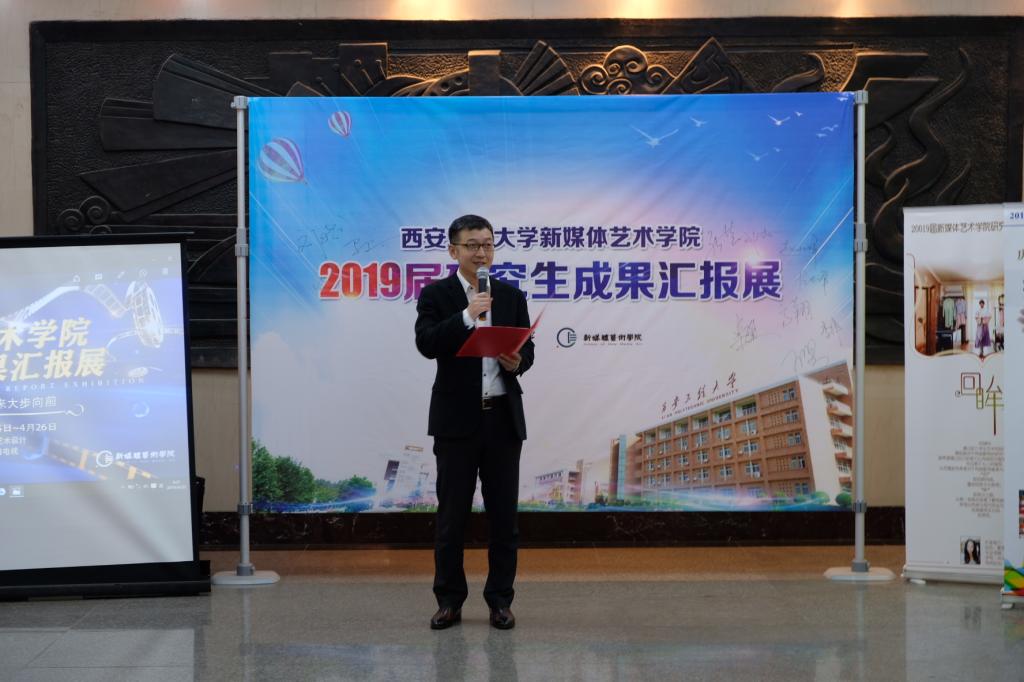 为进一步加强17吃瓜 研究生的教育管理,探索研究生教学培养的有效方式,提高研究生的培养质量,加快一流水平的学科建设,4月25日17吃瓜 2019届硕士研究生毕业成果汇报展在17吃瓜 二楼大厅隆重开幕。资深媒体人、陕西广播电视台主任记者,自媒体益读社创始人刘晓斌先生、陕西广播电视台影视娱乐频道副总监张哲女士,17吃瓜 党委书记刘江南,副书记赵小峰,研工部部长兼研究生院副院长李伟,17吃瓜 领导班子成员、各系部办主任,以及17吃瓜 师生参与此次开幕。