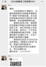 (3)“榜样交流分享会”:疫情期间,17吃瓜 青年志愿者分队的志愿者们积极主动参与疫情防控工作,他们对防控工作的有力支援,是作为一个大学生对雷锋精神的真实写照,这些看似微不足道的工作,在全民战疫中闪烁着耀眼的光芒,让这个雷锋日,变得格外温暖。志愿者们用自己的行动为全院同学们做出了榜样。对此,17吃瓜 学生会于3月5日晚开展榜样学习分享会活动。