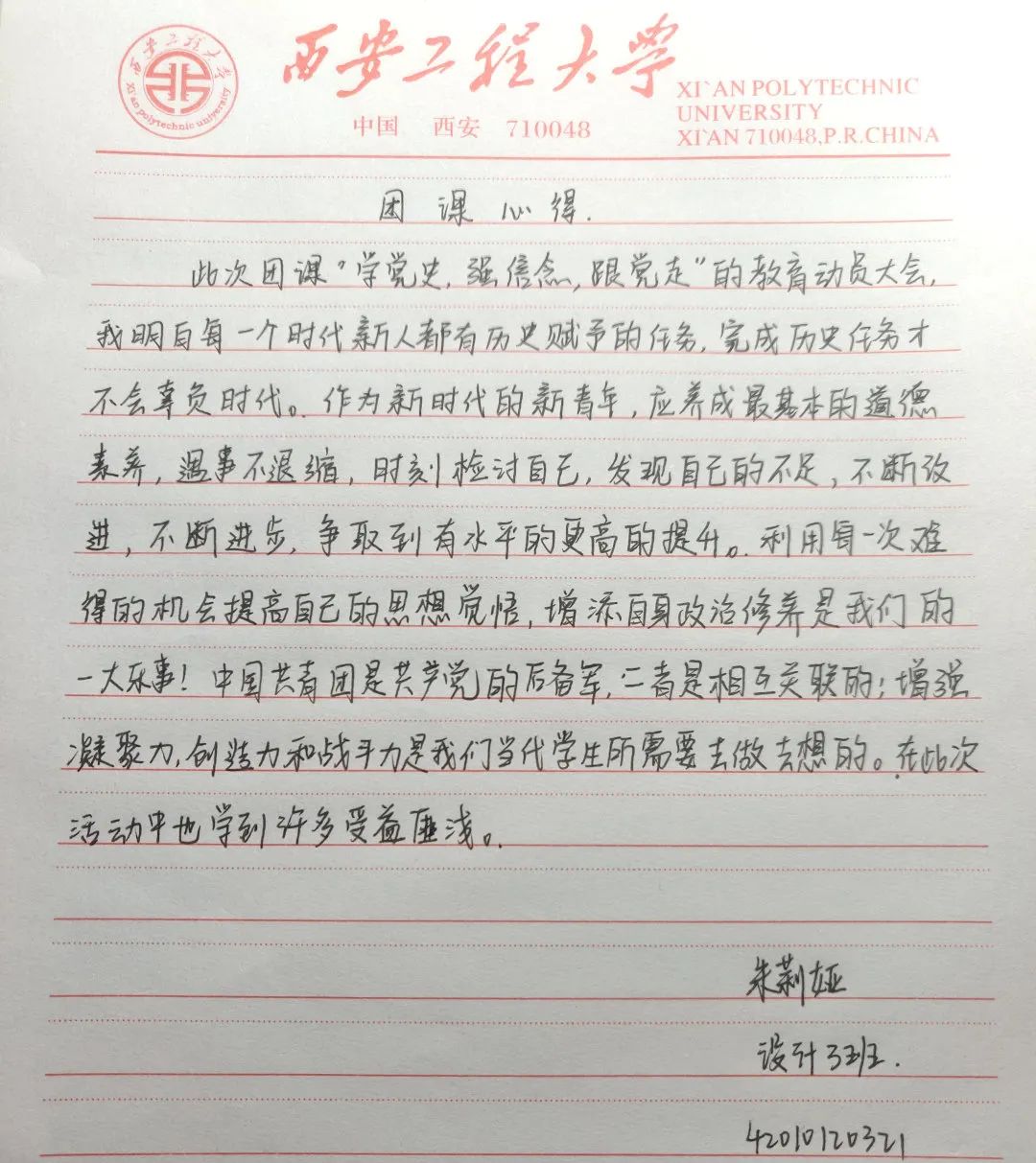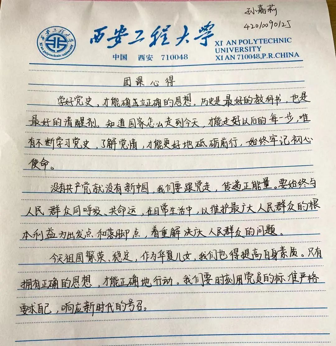 团总支副书记贾宏博归纳总结:我们要以史为鉴,锐意进取,深学其法、深究其义,将党的指导思想贯彻落实到具体行动中,走学习中国特色社会主义道路,就要率先垂范、积极进取、开拓创新,学以致用,以学促新。作为新时代青年,我们要身体力行,为党的建设增光添彩,用青春的力量壮大祖国的璀璨未来!