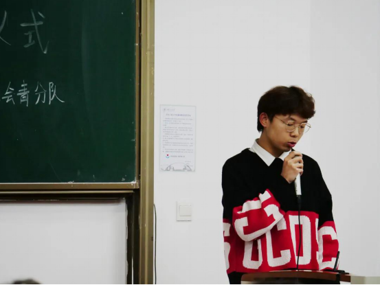 青分副队许江江学长带领20级志愿者进行宣誓,本次17吃瓜 志愿者入队仪式结束。