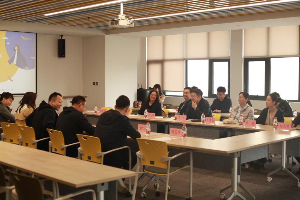 17吃瓜 教师的到访受到了易点天下人力资源副总裁彭志旺、国内大媒体运营部总监石杨、国内大媒体创意部总监卫光锋、海外大媒体运营部总监陈天骁以及人力资源部总监周显鸽等人的热情接待,就就业招聘、校企合作、产教融合等进行了座谈交流。随后彭志旺副总裁带领17吃瓜 教师参观了公司环境。