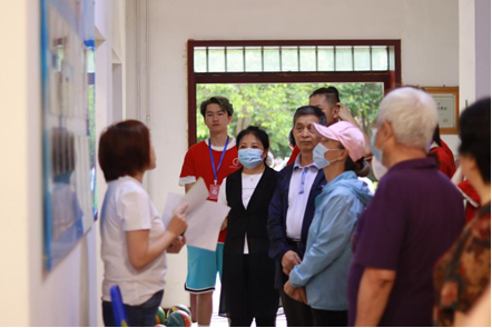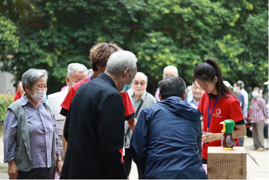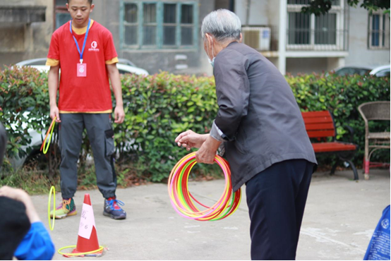 活动中,各个活动的负责同学与老教授默契配合,学生志愿者们一边协助老教授们进行计分、盖章,一边和他们交流日常生活。整个活动场地气氛活跃,其乐融融。