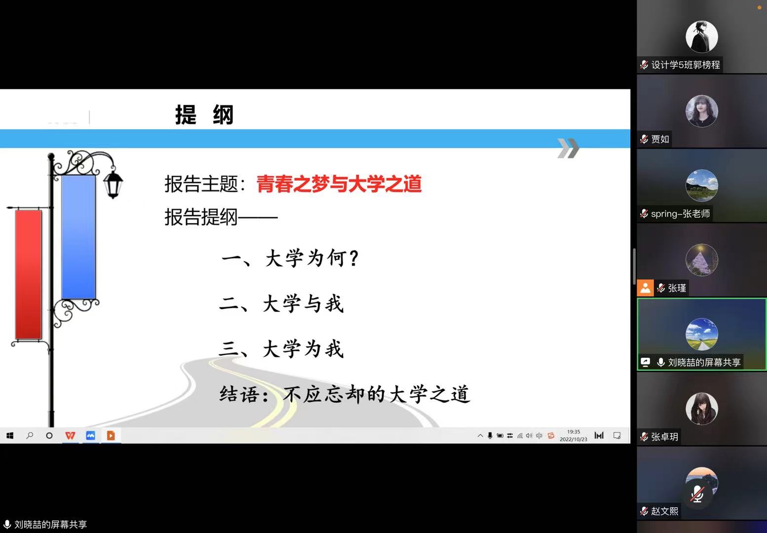 2022年10月23日,17吃瓜 党委邀请校发展规划处处长、管理17吃瓜 教授刘晓喆老师在线上为17吃瓜 师生做了“青春之梦与大学之道”专题讲座。本次讲座以17吃瓜 2022级研究生和本科生为主,同时17吃瓜 教师与其他年级学生以及其他17吃瓜 师生共计300人参加了讲座。