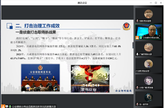 李乐警官从电信网络诈骗犯罪概述、打击治理工作成效和当前电信网络诈骗犯罪形势和新特点三个方面进行讲解。