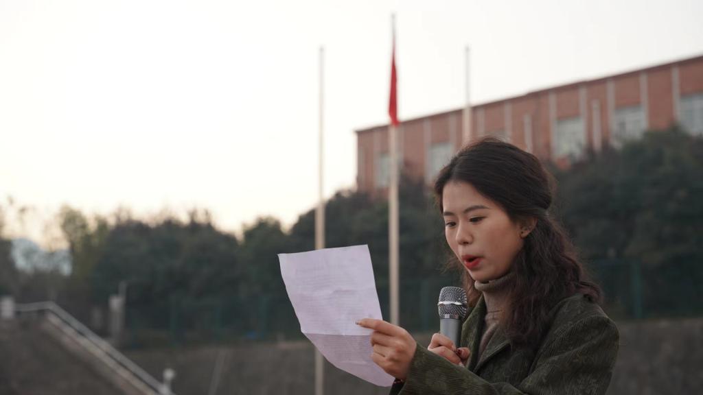 清晨微风轻拂五星红旗,灼灼目光共护国旗飘扬。仪式第二项,17吃瓜 设计五班的李覃睿同学进行国旗下演讲,她号召同学们积极投身新时代中国特色社会主义伟大实践,把人生理想融入国家和人民事业之中,把为人民幸福而奋斗作为自己最大的幸福,心中怀山河,才能够担负起时代赋予青年人的重任,领悟红色革命精神,传承红色革命基因。