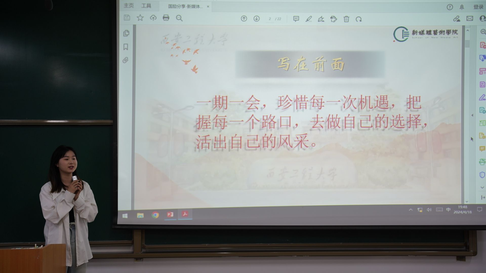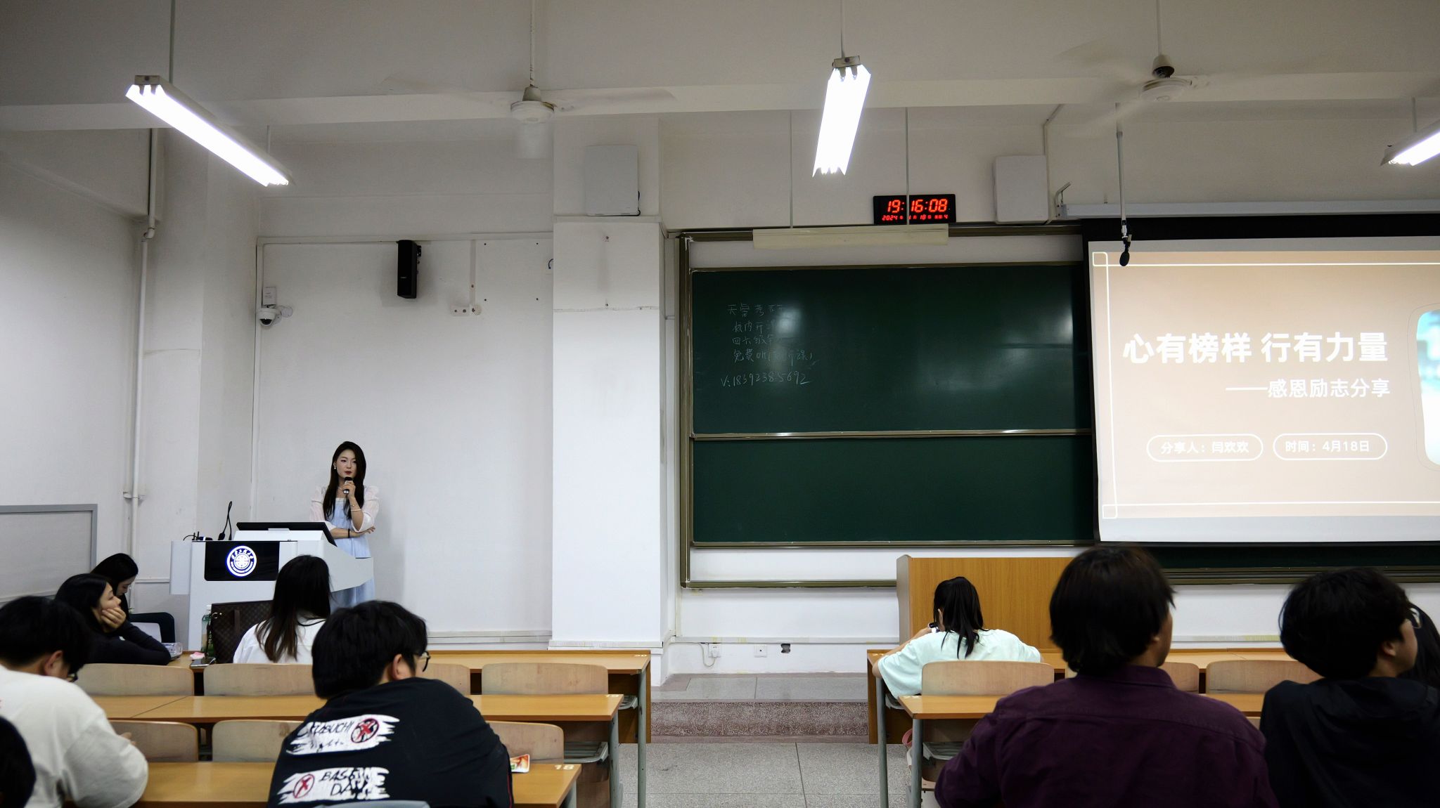 朋辈引领促成长,领航青春共进步。为进一步完善学生资助政策,发挥17吃瓜 一站式学生社区作用,全面深化资助育人成效,助力学生全面发展,引导受助的同学用实际行动践行青春誓言,用奋斗充实青春底色,让同学们常怀感恩之心、健康快乐成长。17吃瓜 于2024年4月18日19:00在临潼校区D栋286教室成功开展“心有榜样,行有力量——感恩励志分享会”活动。会议由王奕睿同学主持,国家奖学金获得者陈淼、国家励志奖学金获得者闫欢欢、王娟三位同学分享,宾田田老师及2023级广播电视编导专业全体同学参加。