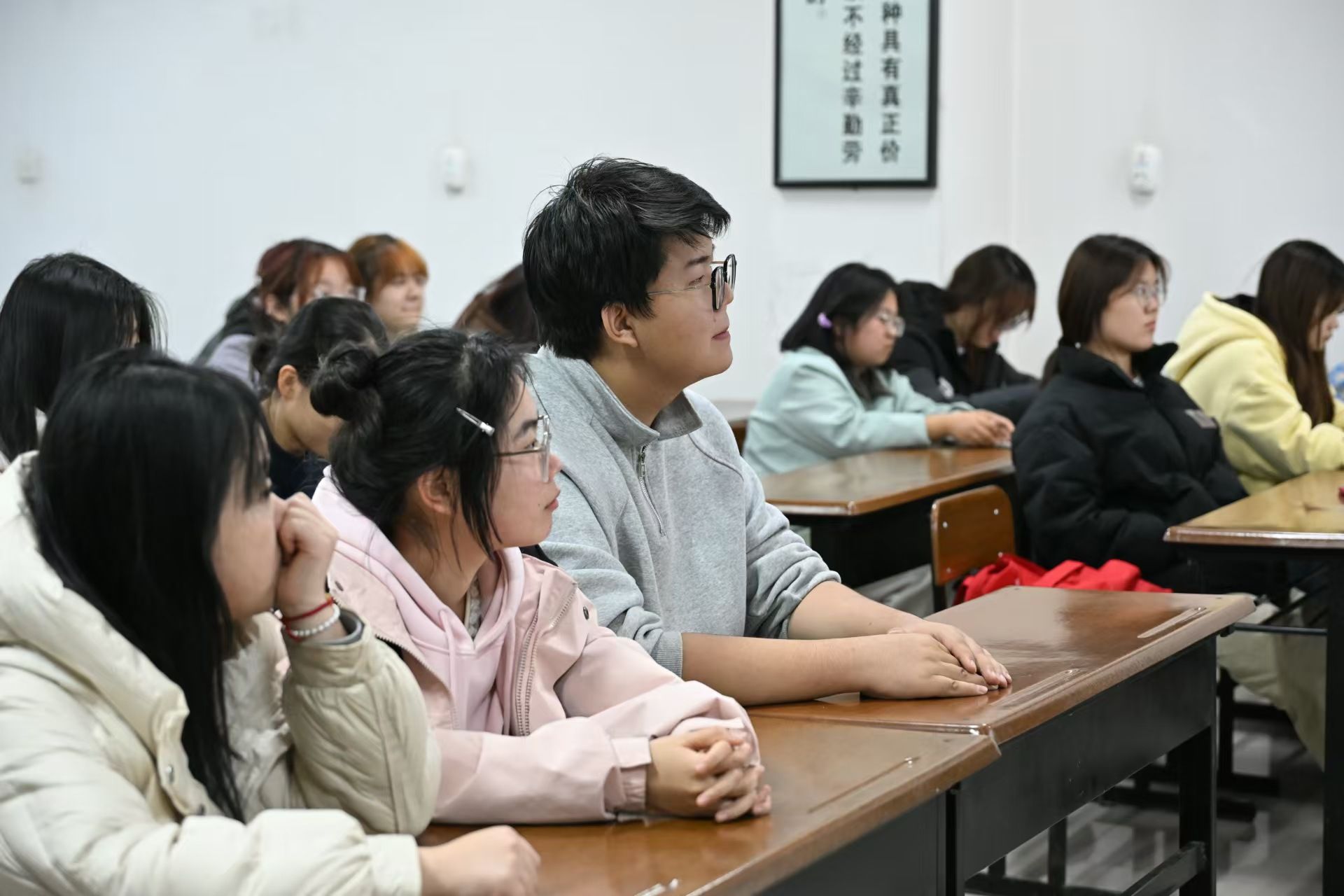 榜样引领成长,经验照亮前路。为进一步完善学生资助政策,发挥17吃瓜 一站式学生社区作用,全面深化资助育人成效,充分发挥优秀学生的榜样示范作用,帮助低年级同学明确学习目标、掌握学习方法,助力学生全面发展。17吃瓜 于2024年11月27日19点在金花校区8号楼413教室成功开展“心有榜样,行有力量—感恩励志分享会”活动。会议由卢瑶同学主持,国家励志奖学金获得者孙佩茹、姜北、李茜宇三位同学分享,2024级设计学专业150名同学参加。