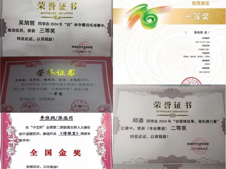 在校级文化活动中,同学们充分结合专业知识和实践能力,积极参与校园文化活动,比如“青春声力量 书香颂华章”朗读大赛、“讲雷锋故事,凝先锋力量”朗诵比赛、“中艺杯”全国第二届朗诵主持人大赛等。在赛事中展示了他们的专业技能和才华,也通过活动的交流和学习,同学们的专业水平和实践能力均得到大幅度的提高。这些成绩的取得,不仅是对同学们努力的肯定,也是对他们未来发展的鼓励和支持。同学们不仅提升了自己的综合素质和能力水平,也为班级和学校赢得了荣誉。他们的表现,充分展示了当代大学生的风采和担当。