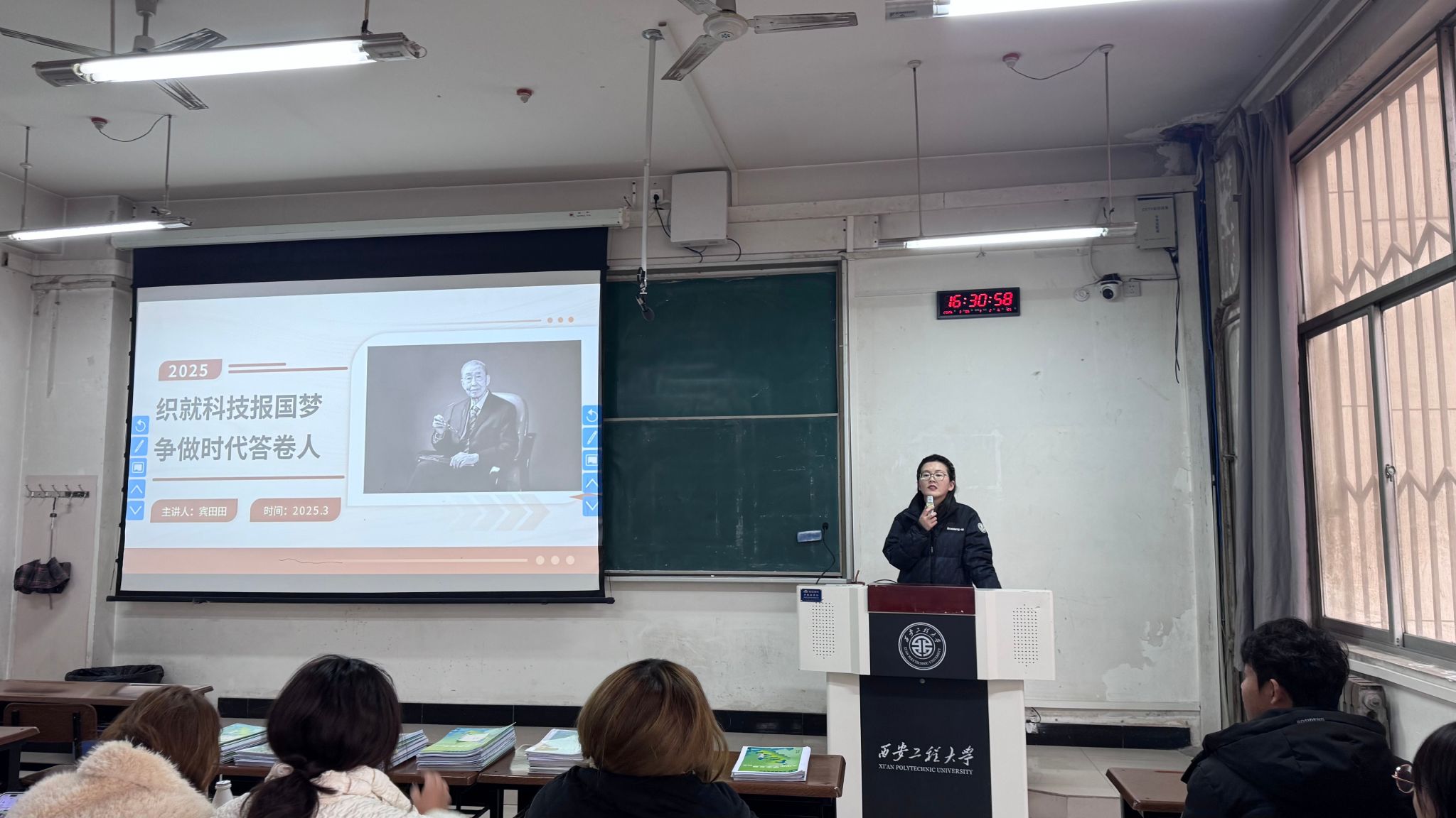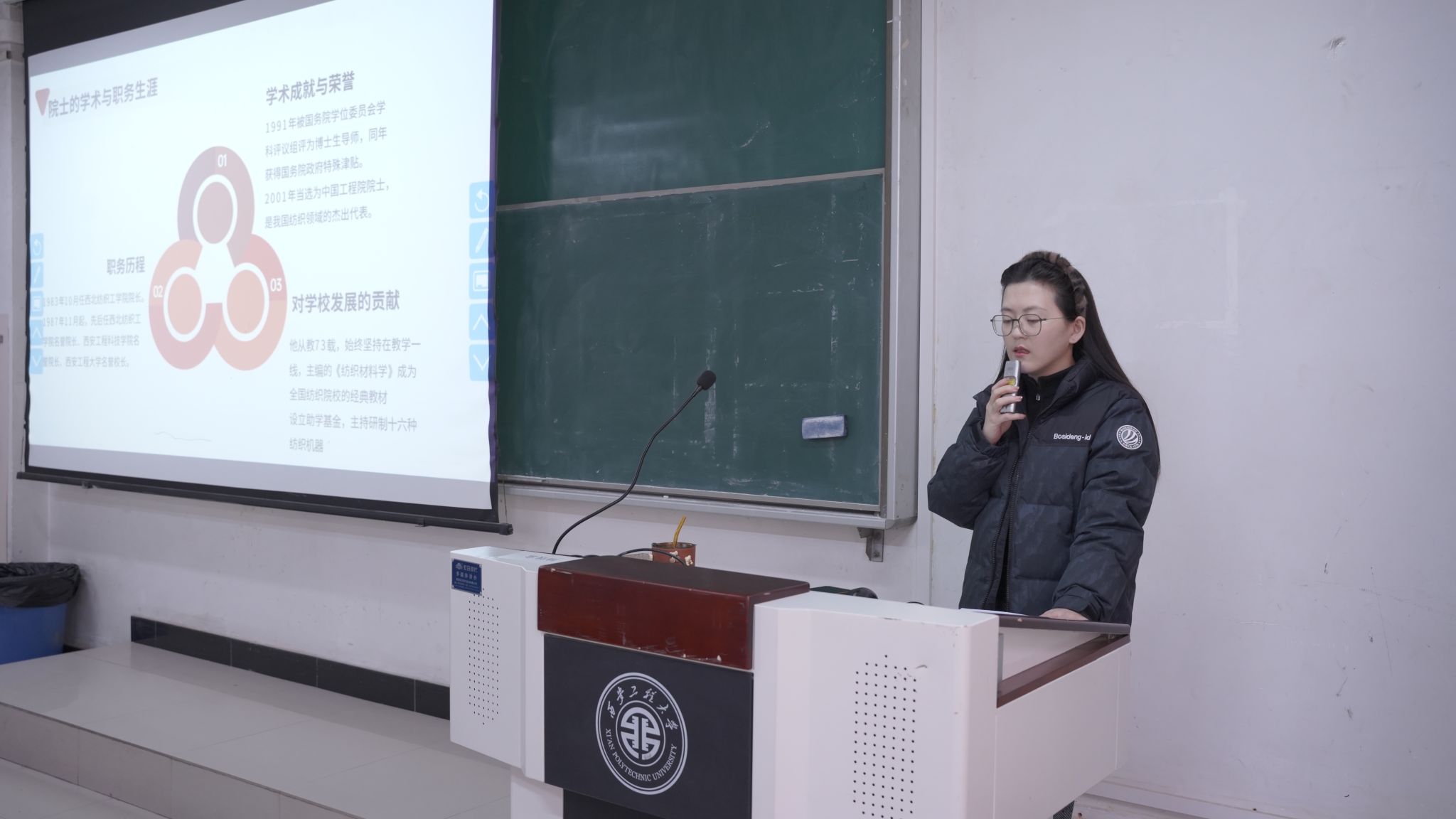 会上,宾田田首先带领同学们回顾了姚穆院士的生平事迹。姚穆院士是我国纺织材料领域的奠基人,2001年当选为中国工程院院士,曾担任西北纺织工17吃瓜 院长等职务。他从教73载,始终坚持在教学一线,主编的《纺织材料学》成为全国纺织院校的经典教材。姚穆院士不仅在学术上取得了卓越成就,还设立了助学基金,主持研制了十六种纺织机器,为学校的发展和纺织行业的进步作出了巨大贡献。她特别强调了姚穆院士的高尚精神品格:将个人的理想追求融入国家建设发展中,为纺织事业奉献了一生;他严谨的治学态度和无私奉献的精神,深深影响了17吃瓜 的师生,成为学校文化的重要组成部分。