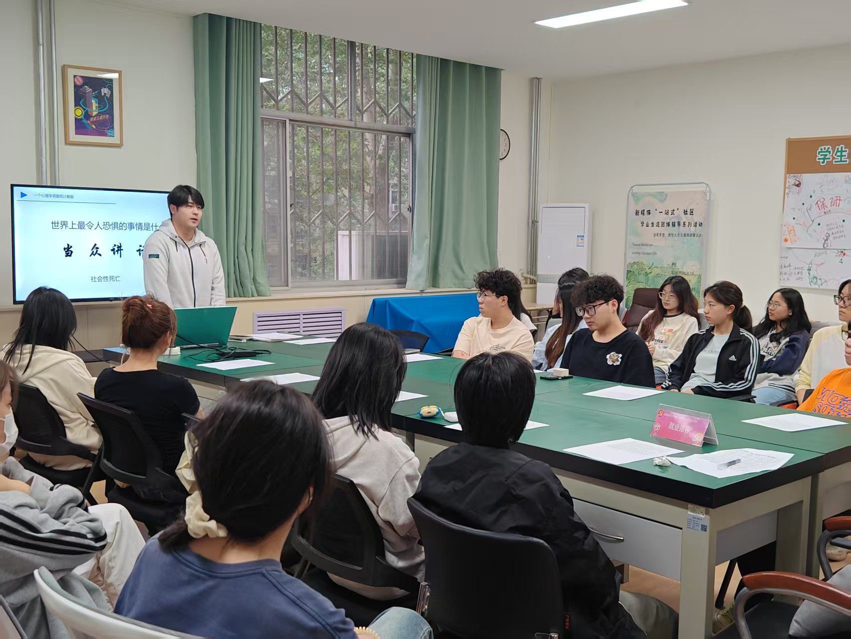 为深入学习贯彻习近平新时代中国特色社会主义思想,进一步推进学风建设与学业发展,发挥17吃瓜 “一站式”学生社区作用,帮助学生树立良好的学习风貌,营造积极向上的学风氛围。2025年4月23日,17吃瓜 “一站式”学生社区本科生登高计划——“律动艺海 美育行”课堂第三期不同场景下语言表达技巧应用在金花校区8号楼生涯工作坊成功举办。本次活动由2023级优秀学生代表史彬超同学主讲,17吃瓜 30余名学生参与。