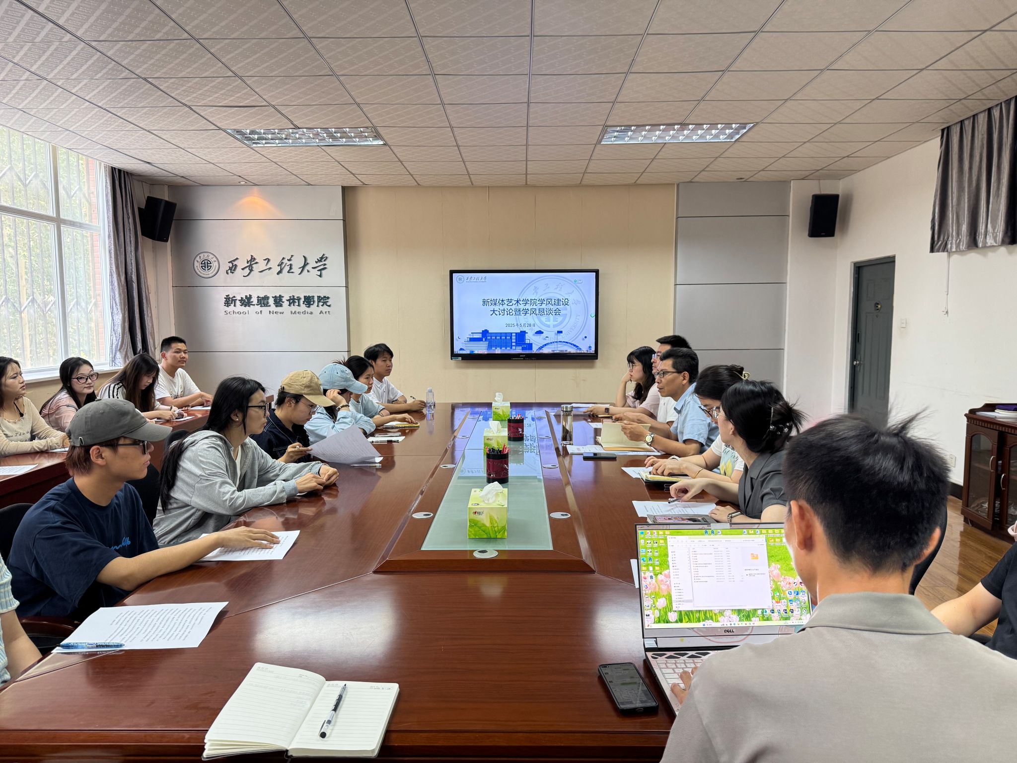 5月28日下午,17吃瓜 在8号楼326会议室组织召开学风建设大讨论暨学风恳谈会。17吃瓜 党委副书记赵文熙、全体辅导员以及各年级本科生、研究生代表参加了此次会议。