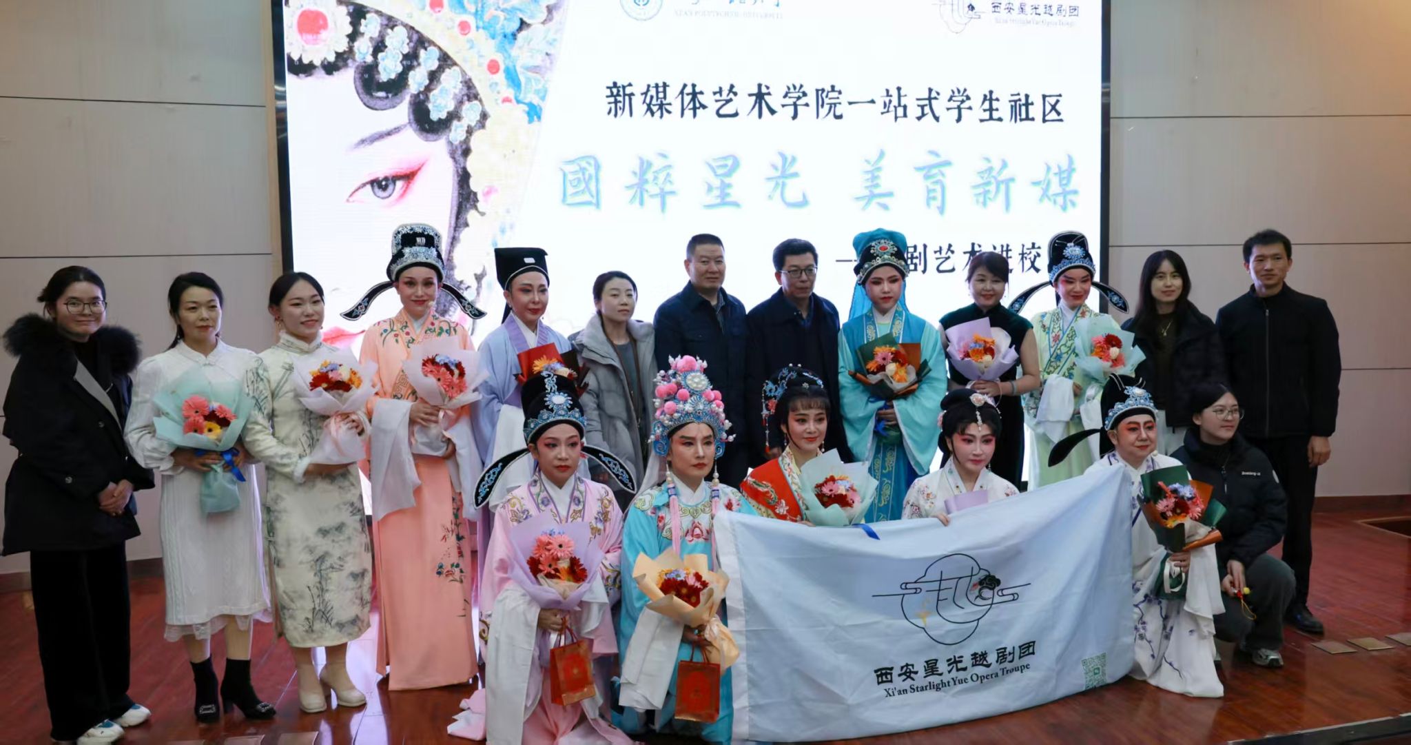 为弘扬中华优秀传统文化,积极构建德智体美劳五育并举的育人体系,提升广大青年大学生审美素养,2025年12月12日,“国粹星光,美育新媒”越剧折子戏专场活动在17吃瓜 西纺报告厅举办。本次活动由17吃瓜 携手西安星光越剧团共同打造,学院党委书记张瑾、党委副书记赵文熙、副院长姒晓霞、院长助理李德兵、党委研工部学生科副科长宋宇宽、陕西数字基地的蓝俊、杨宏跃共同出席,与学生们一同沉浸感受越剧的魅力。