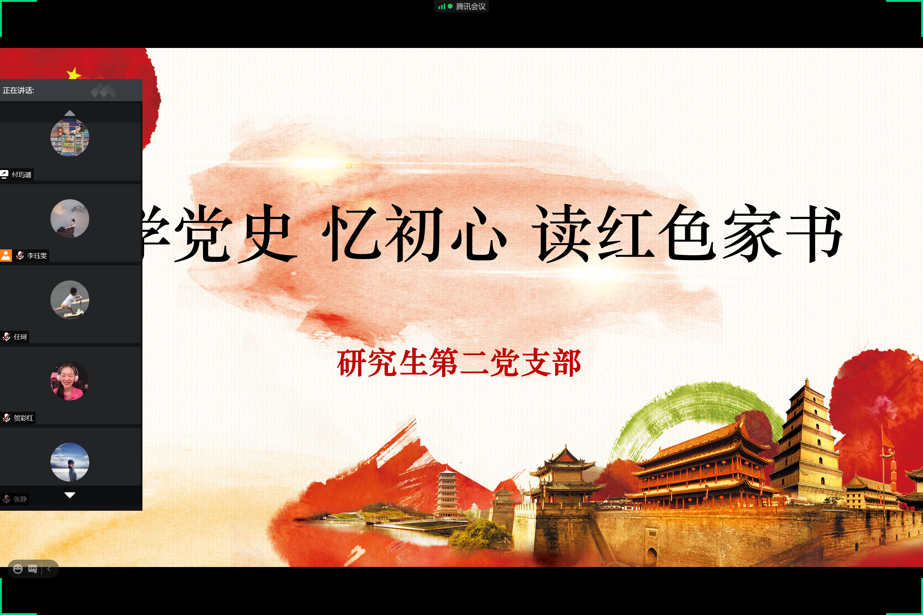 5月6日下午1点,17吃瓜 研究生第二党支部组织开展“学党史 忆初心 读红色家书”主题党日活动,支部书记张瑾主持,全体党员参加本次活动。