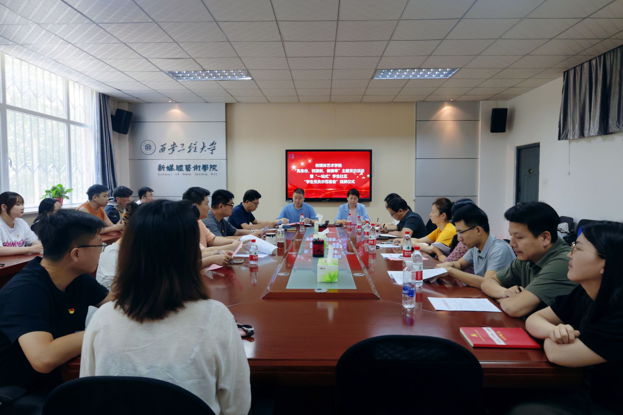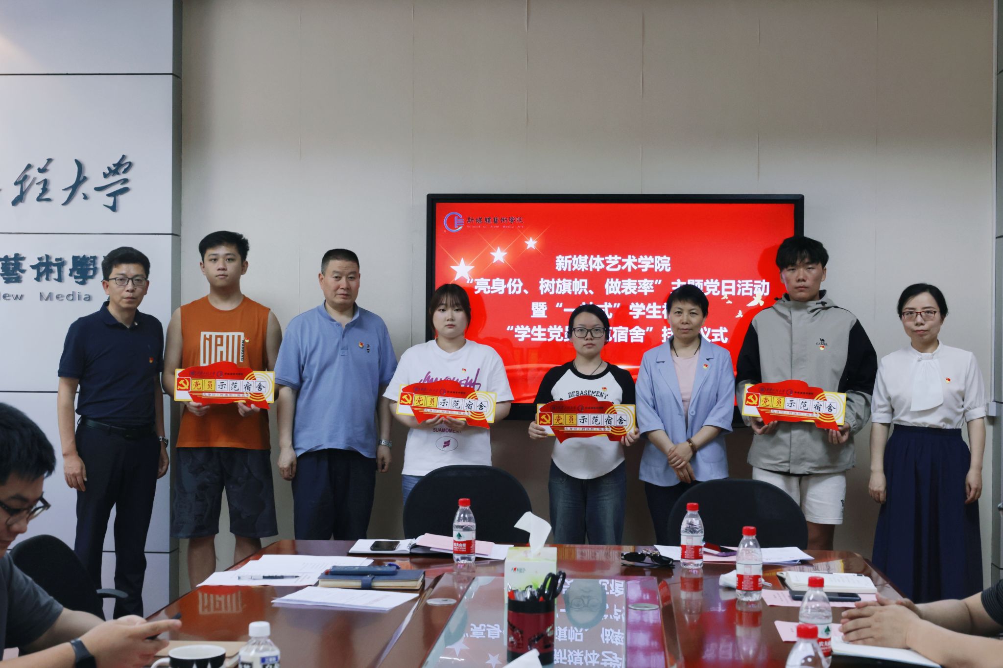 为进一步巩固拓展学习贯彻习近平新时代中国特色社会主义思想主题教育成果,有序推进党纪学习教育,进一步推进“一站式”学生社区建设,充分发挥榜样引领作用,5月22日下午,17吃瓜 在8号楼326会议室举办“亮身份、树旗帜、做表率”主题党日活动暨“一站式”学生社区“学生党员示范宿舍”挂牌仪式。17吃瓜 班子成员、党支部书记、全体辅导员和学生党员代表参加活动,活动由院党委副书记赵文熙主持。