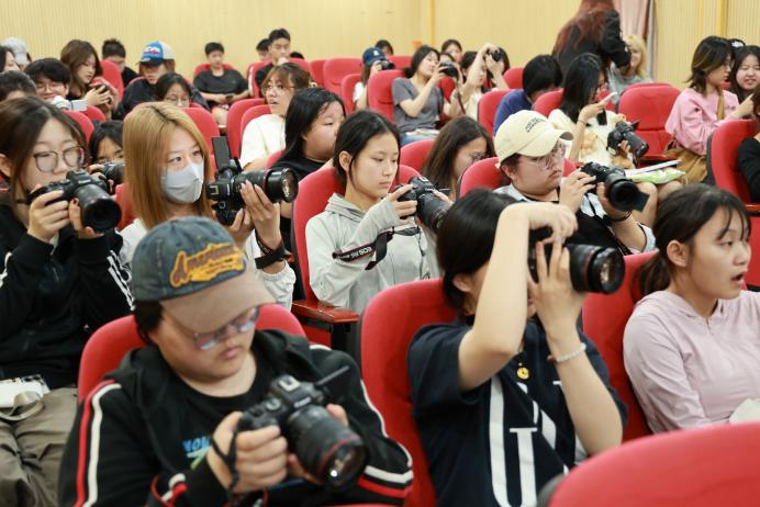 活动中,佳能官方认证讲师张怡博老师以其独特的生动讲解风格,巧妙地从佳能摄影、摄像的实际案例切入,从相机参数的精细设置、视频格式的合理选择,到视频构图的艺术技巧、机身的精准挑选等各个方面,结合现场实操演示,为学生们深入展示了佳能产品在摄影及摄像方面的精湛技术。与此同时,张老师还与现场学生深入交流摄影行业动态,让学生们能够及时、准确地把握行业的发展现状,紧跟时代步伐,学生们不仅对摄影产品有了更为深刻的理解,还收获了许多实用的制作技巧。