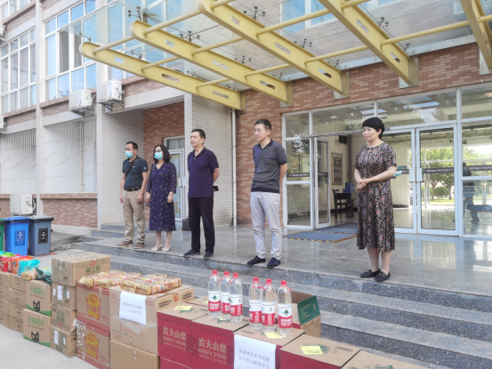慰问会的第二项,17吃瓜 领导给群演学生分发慰问品。17吃瓜 前期充分了解学生训练期间的生活、饮食需求,为同学们购买了一批生活上必不可少的食品。