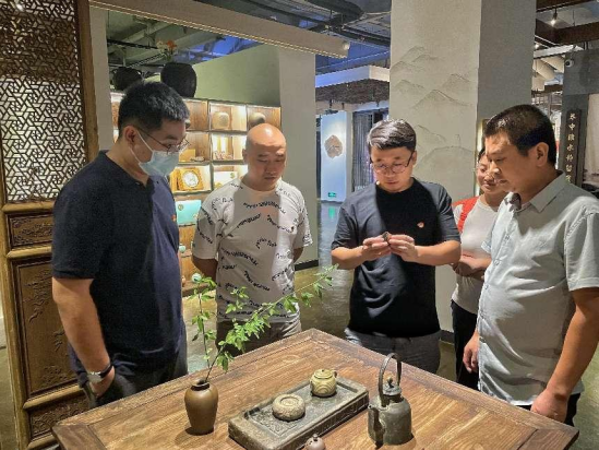 随后来到紫阳富硒茶陶博物馆,了解紫阳乡村振兴龙头产业紫阳富硒茶的历史文化。唐代山南茶叶作为金州(今安康)“土贡”,成为献给朝廷的山珍,紫阳是山南茶的主要产区,采摘、制作、饮用的水平不断提高,形成了一种独特的陕南茶文化。