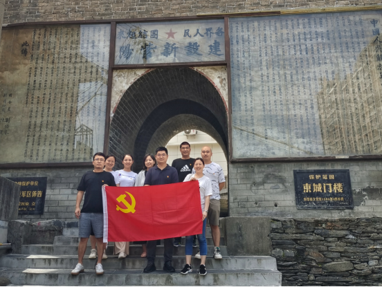 首先来到紫阳县东城门(中原军区布告旧址),全体党员在这里。紫阳县东城门被陕西省文物局列入陕西省第一批不可移动革命文物名录。在逐鹿中原的峥嵘岁月里,为唤醒和发动群众,宣传我军的宗旨和政策,紫阳县东城门贴有一张《中原军区布告》。这张布告是由邓子恢创作,刘伯承、邓小平等于1948年10月10日所颁布的布告,主要内容是宣传党的政策、安定人心、瓦解敌人、发动群众。
