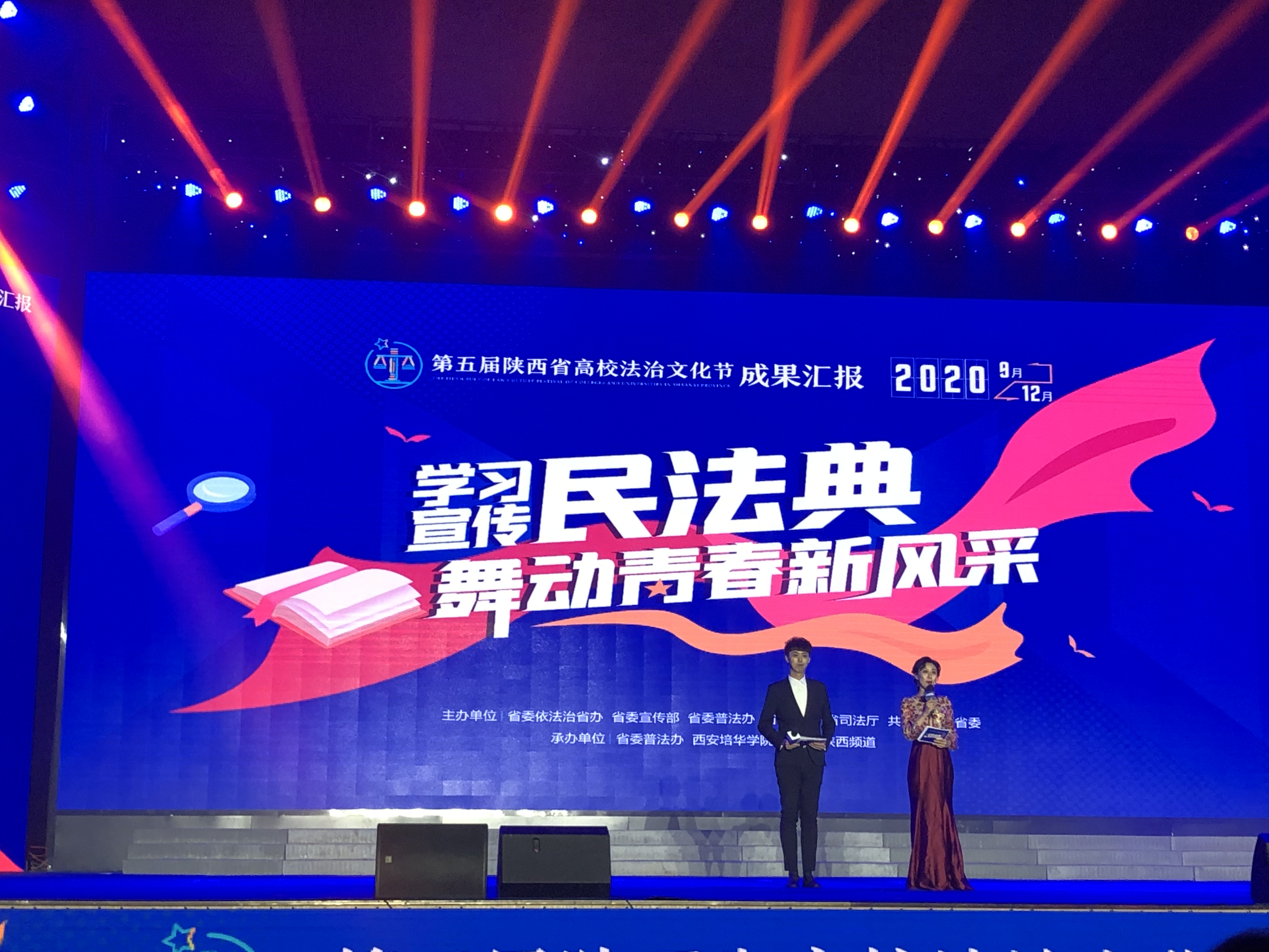 2020年12月1日,第五届陕西省高校法治文化节成果汇报在西安培华17吃瓜 举行。省人大常委会党组副书记、副主任、省委普法工作领导小组副组长姜锋,省委依法治省办、省委宣传部、省委普法办、省教育厅、省司法厅、共青团陕西省委有关负责同志及西安培华17吃瓜 领导和部分高校大学生代表近500人参加了成果汇报活动。主办单位对第五届陕西省高校法治文化节获奖单位和个人进行了表彰,17吃瓜 荣获优秀组织单位奖,17吃瓜 播音与主持系选送精彩的朗诵节目《法治颂》参加了文化节成果汇报。