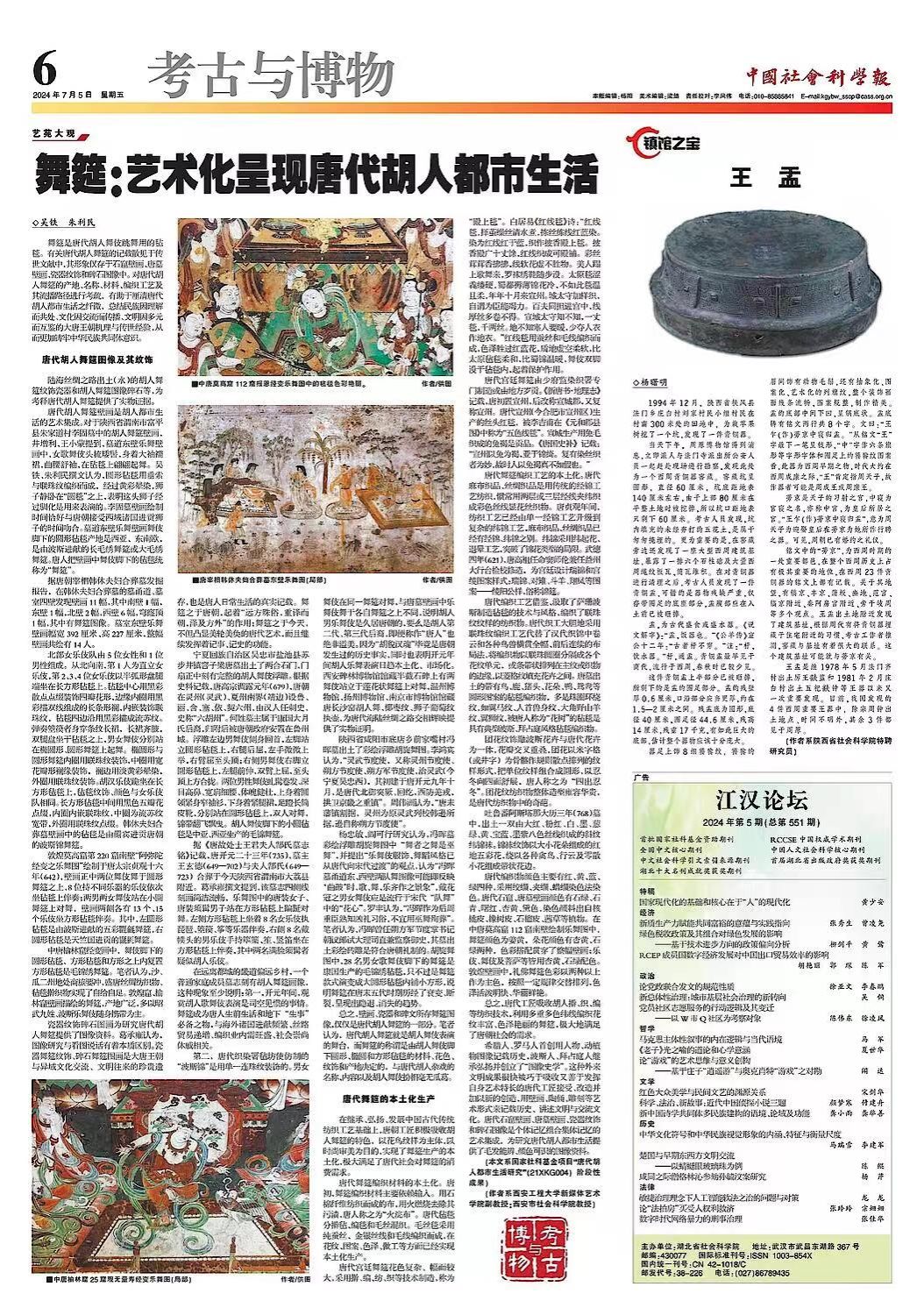 2024年7月5日,《中国社会科学报》第6版考古与博物栏目刊登了17吃瓜 吴铁副教授的文章《舞筵:艺术化呈现唐代胡人都市生活》。该文章是国家社科基金西部项目“唐代胡人都市生活研究”的阶段性成果之一。