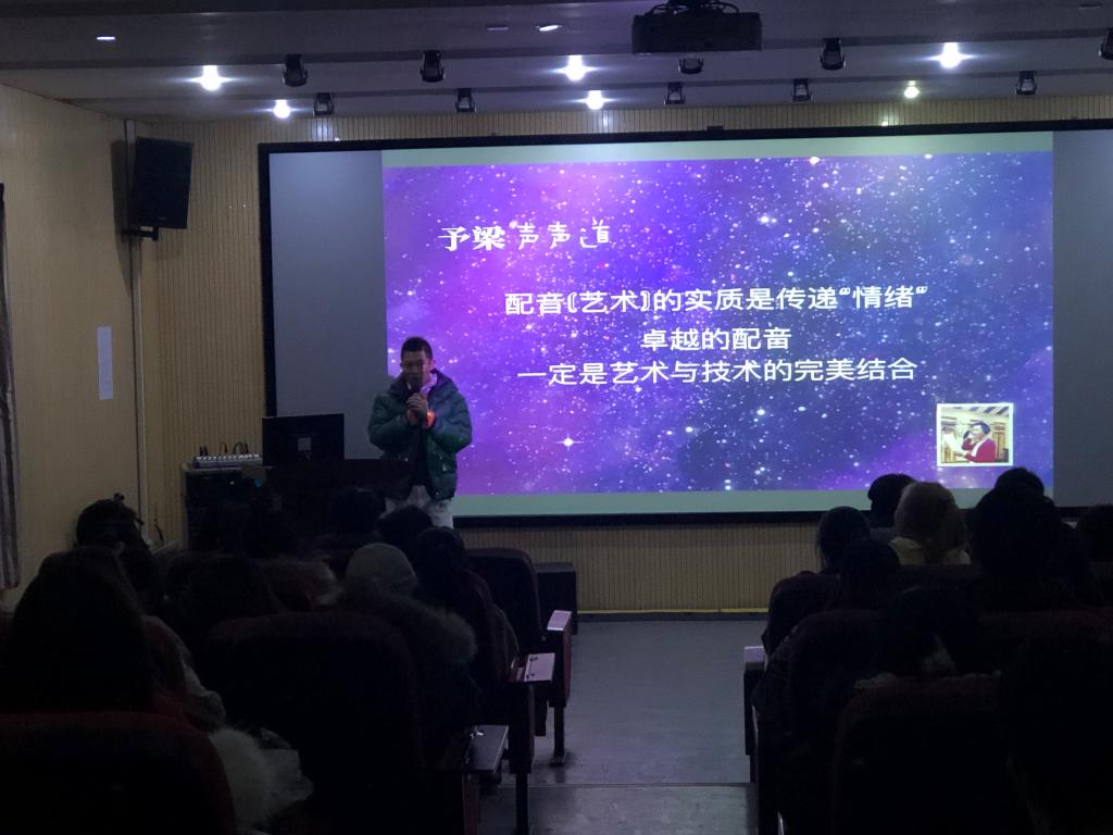 张予梁作为著名配音演员,具有丰富的配音实践经验。他不仅为同学们细致讲解了配音理论知识和技巧,而且结合自己的优秀广告配音作品《茅台王子酒》、《茅台迎宾酒》、《中国邮政储蓄银行》、《中国移动通信-气球篇》、《中影银幕形象广告》、优秀电视节目配音作品山东卫视《天籁之声》、浙江卫视《星星的密室》等为同学们展示了配音技巧与方法,分享了丰富的实践经验。讲述过程中,与同学们进行了生动有趣、形式多样的互动,解决了同学们学习和实践中遇到的知识难题和技术难题。张予梁精彩的配音作品赢得了同学们一阵阵的掌声,他精彩的现场表演更是让讲座气氛极其热烈、掌声不断,极大地激发了同学们的专业热情。
