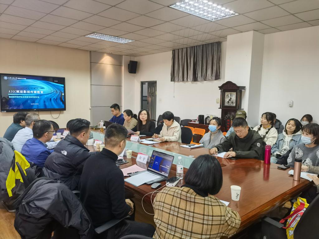 2023年12月1日,AIGC赋能影视传媒教育暨迎接审核评估本科教育教学研讨会在17吃瓜 举行。本次研讨会邀请了高校专家学者、企业代表共同探讨AIGC在影视传媒教育领域的前沿动态与发展趋势。17吃瓜 师生共60余人参加了研讨会。