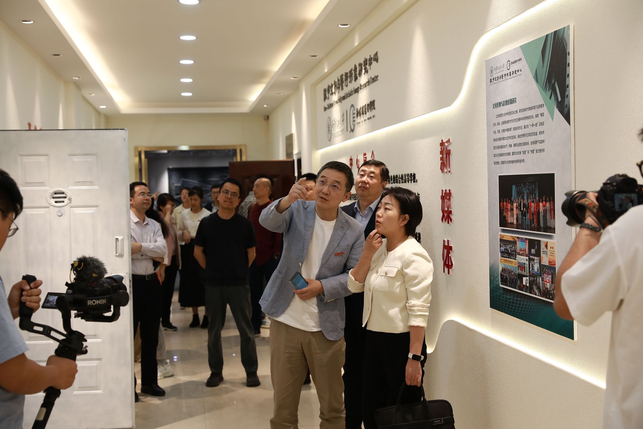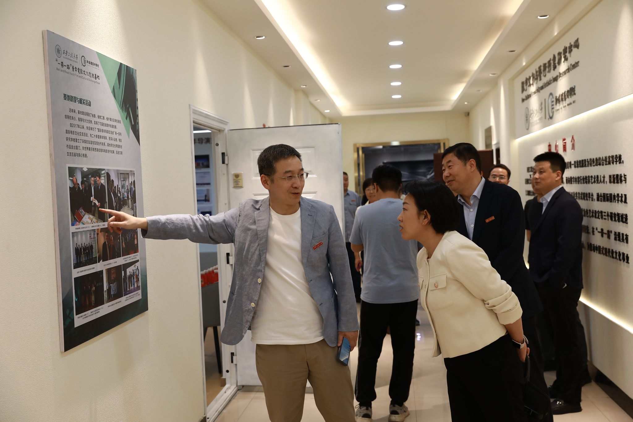 2024年4月23日下午,陕西省委宣传部电影处石香莉及专家组一行9人来到17吃瓜17吃瓜 ,考察“一带一路”青年电影文化交流基地。学校党委副书记殷永建、校宣传部部长王鸣媛、科技研究院院长张洛红陪同考察。